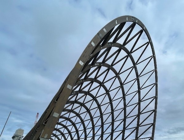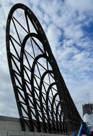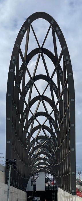 Installation proceeded arch-by-arch, starting from the rear of each portal. After each arch was installed, infill struts and survey checks followed before moving on to the next. This staged approach enabled precision assembly alongside active roadways and live work zones.